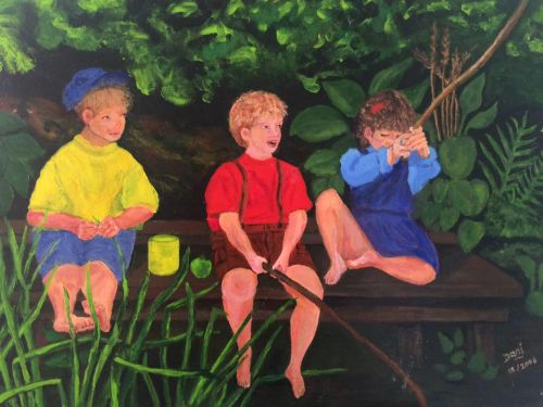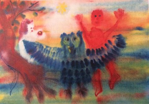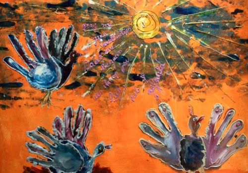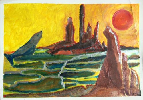 Dit is schilderen op gevoel, vanuit een korte geleide meditatie of visualisatie, dat wil zeggen dat je via een “verhaal” op reis gaat in jezelf.